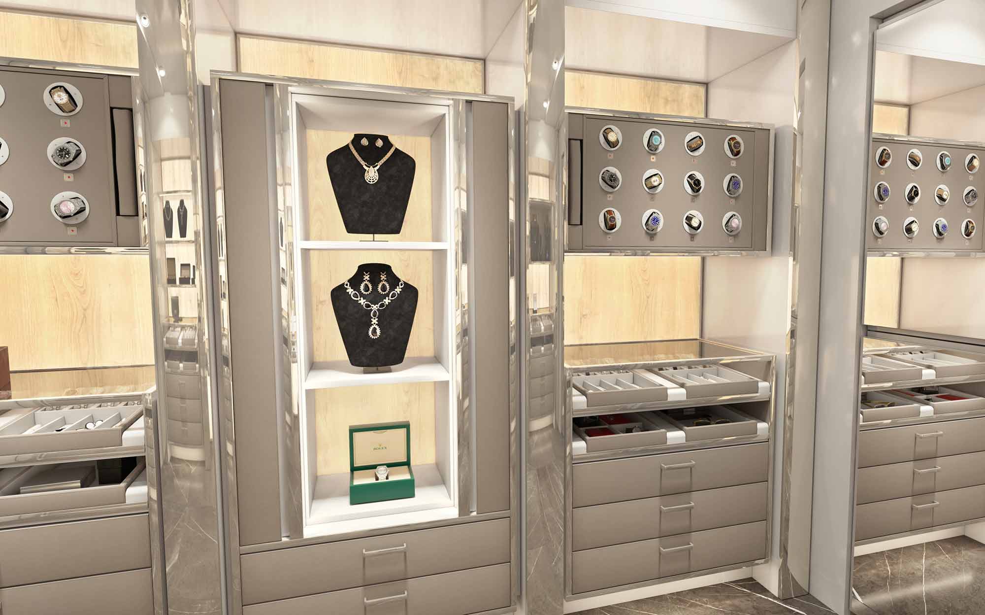 Luxury Treasure Rooms: secure and elegant spaces designed to safeguard jewelry, artworks, and valuables, furnished with impeccable Italian-made style and security.